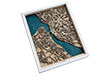 Diese mehrschichtige, volumetrische Karte besteht aus umweltfreundlichem Birkensperrholz und ist mit einem Kiefernrahmen umrahmt.