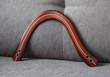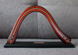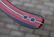 A returning wooden boomerang, with stunning natural wood texture and beautiful circular flight.