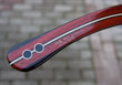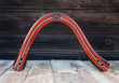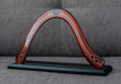 A returning wooden boomerang, with stunning natural wood texture and beautiful circular flight.